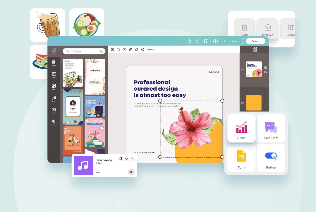 Design anything with royalty-free illustrations, stock photos and audio clips by genuine creators